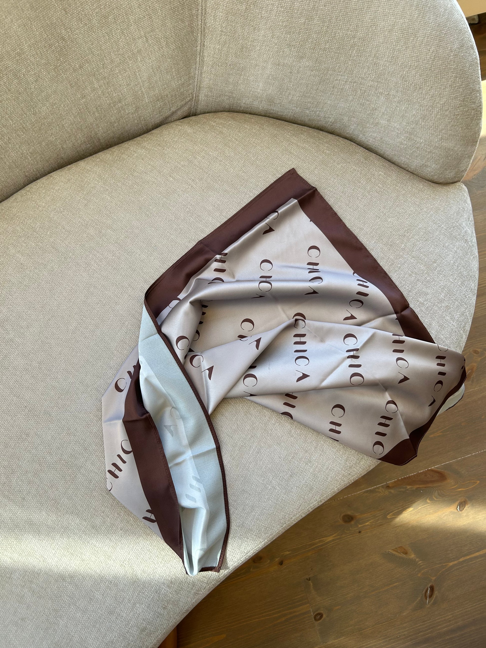 Moderna scarfen, går att använda till håret, halsen väskan men även på valfritt sätt.